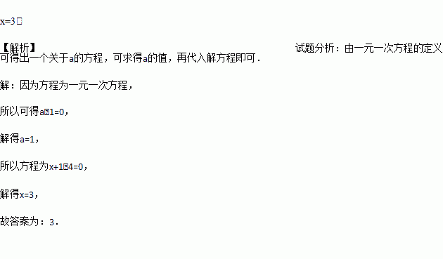 关于x的方程(a-1)x2+x+a2-4=0是一元一次方程,则方程的解为 .