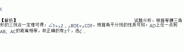 如图所示,在△ABC中,AB=AC,AD是中线,DE⊥AB,DF⊥AC,垂足分别为E,F,则下列四个结论中: