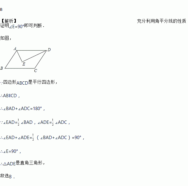 在?ABCD中,若∠BAD与∠CDA的角平分线交于点E,则△AED的形状是( )