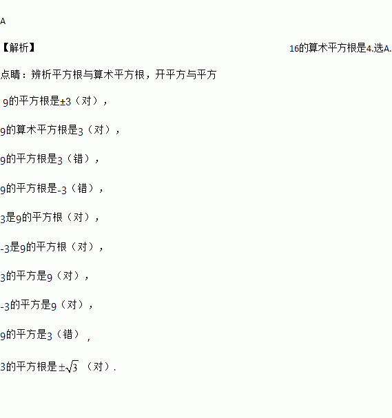 16的算术平方根是 ( )