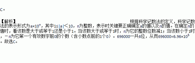 A.6.96×103 B.69.6×105 C.6.96×105 D.6.96×106