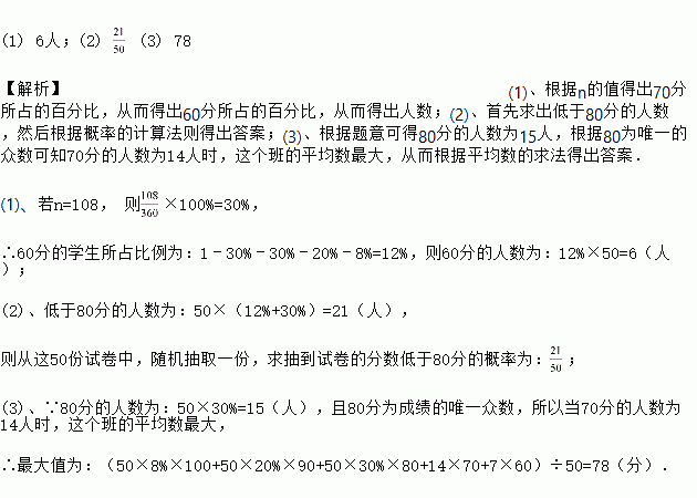 (3)若成绩的唯一众数为80分,求这个班平均成绩的最大值.