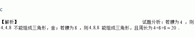 若等腰三角形的两边长分别为4和8,则这个三角形的周长为 .