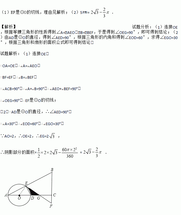 如图,在△ABC中,∠ACB=90°,O是边AC上一点,以O为圆心,OA为半径的圆分别交AB,AC于点E,D,在BC的延长线上取点F,使得BF=EF,EF与AC交于点G.