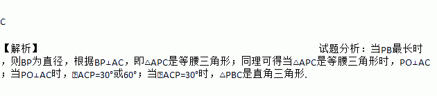 D. 当∠ACP=30°时,ΔPBC是直角三角形