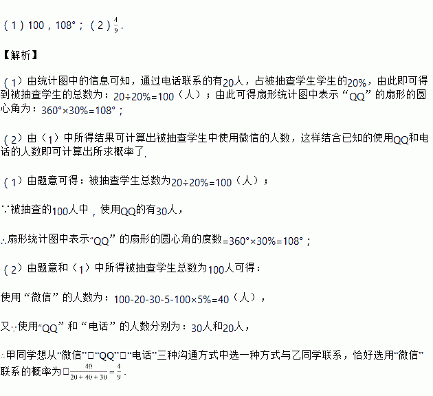 (2)某天甲同学想从“微信”、“QQ”、“电话”三种沟通方式中选一种方式与乙同学联系,恰好选用“微信”联系的概率为多少?