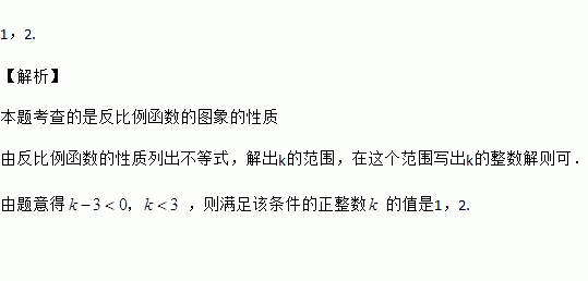 如果反比例函数y=的图象位于第二、四象限,那么满足条件的正整数k的值是________.
