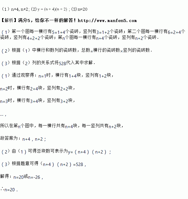 个图中,每一横行共有________块瓷砖,每竖行共有________块瓷砖(均用含![]()