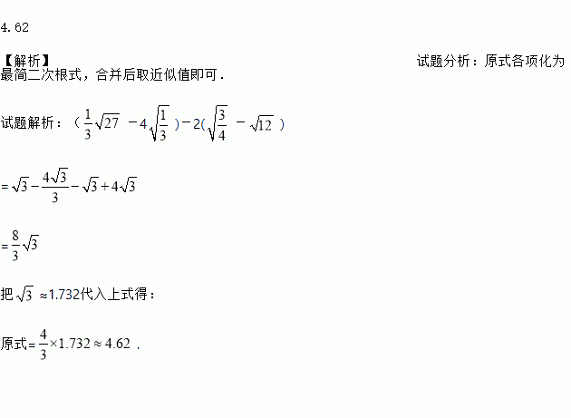 已知≈1.732,求(-4)-2(-)的近似值(结果保留小数点后两位).