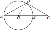 分析:连接OD,由切线的性质可得三角形ODB为直角三角形,因为BC=OB,所以OD=OB=