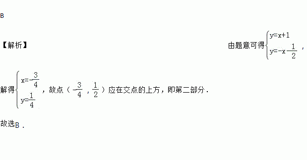 如图,直线l1:y=x+1与直线l2:y=﹣x﹣把平面直角坐标系分成四个部分,则点(, )在( )