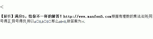 如果a>0,b<0,那么ab ______ 0(填“>”、“<”或“=”).