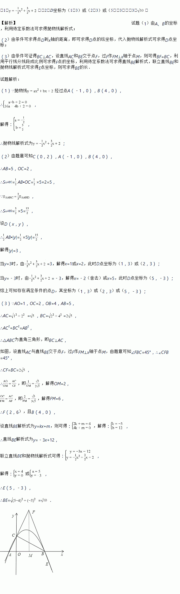(3)将直线BC绕点B顺时针旋转45°,与抛物线交于另一点E,求BE的长.