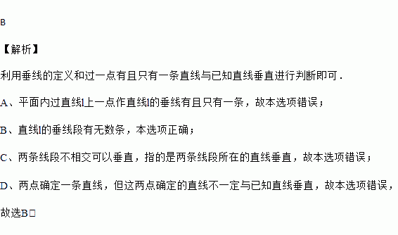 D. 过直线l上一点A和直线l外一点B可画一条直线和直线l垂直
