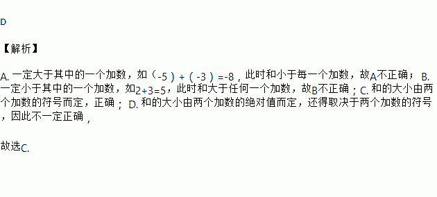 D. 和的大小由两个加数的符号与绝对值而定