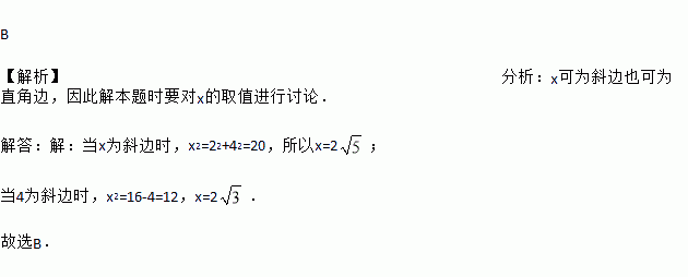 若直角三角形的三边长分别为2,4,x,则x的可能值有( )