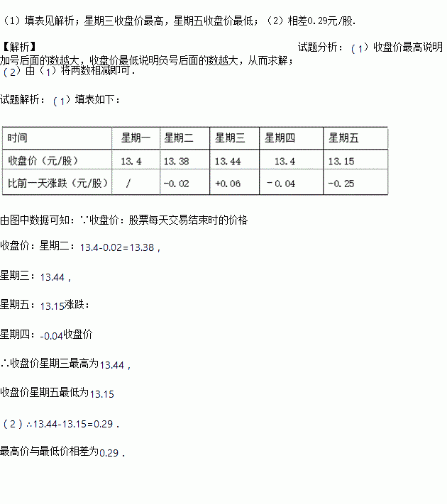 (1)填表,并回答哪天收盘价最高?哪天收盘价最低?