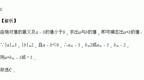 若|a|=3,|b|=2,且a-b<0,则a+b的值等于 ( )