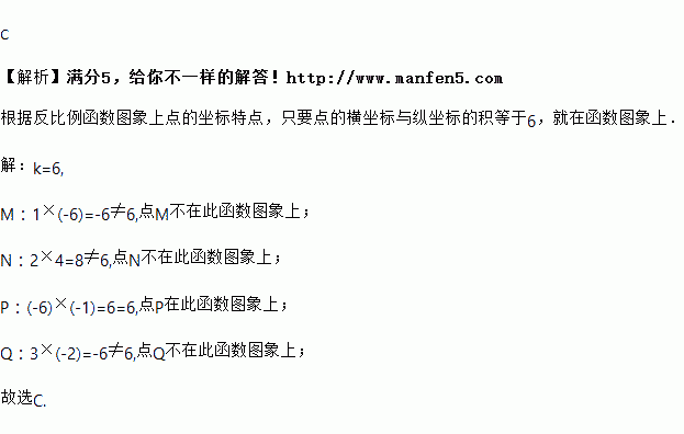 平面直角坐标系中有四个点:M(1,-6),N(2,4),P(-6,-1),Q(3,-2),其中在反比例函数y=的图象上的是( )