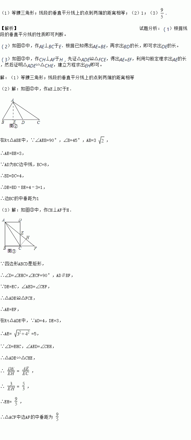 (3)如图③,在矩形ABCD中,AB=6,AD=4.点E为边CD的中点,连结AE并延长交BC的延长线于点F,连结AC.求△ACF中边AF的中垂距.