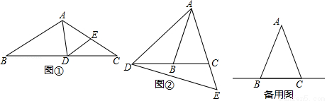 如图,△ABC中,∠ABC=∠ACB,点D在BC所在的直线上,点E在射线AC上,且AD=AE,连接DE.