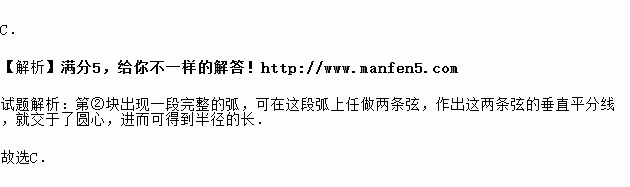 一圆形玻璃被打碎后,其中四块碎片如图所示,若选择其中一块碎片带到商店,配制与原来大小一样的圆形玻璃,选择的是( )