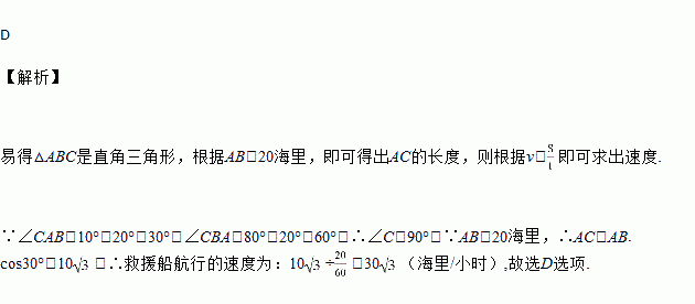 海里/小时 B. 30海里/小时 C. 20