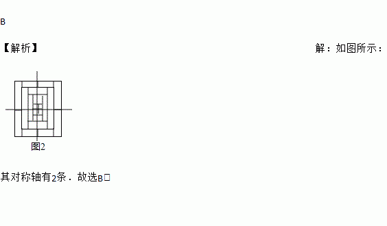 B 【解析】【解析】 如图所示: 其对称轴有2条.故选B.