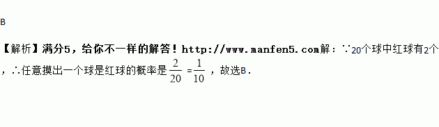 一个不透明的袋中共有20个球,它们除颜色不同外,其余均相同,其中8个白球,5个黄球,5个绿球,2个红球,则任意摸出一个球是红球的概率是( )