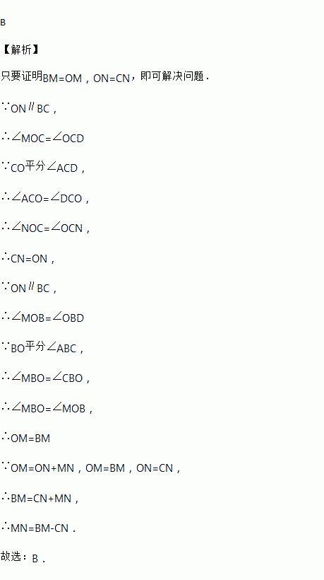 如图,中,BO平分,CO平分的外角,MN经过点O,与AB,AC相交于点M,N,且,则BM,CN之间的关系是
