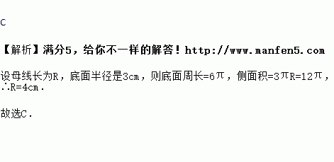 一个圆锥的侧面积是12π,它的底面半径是3,则它的母线长等于( )