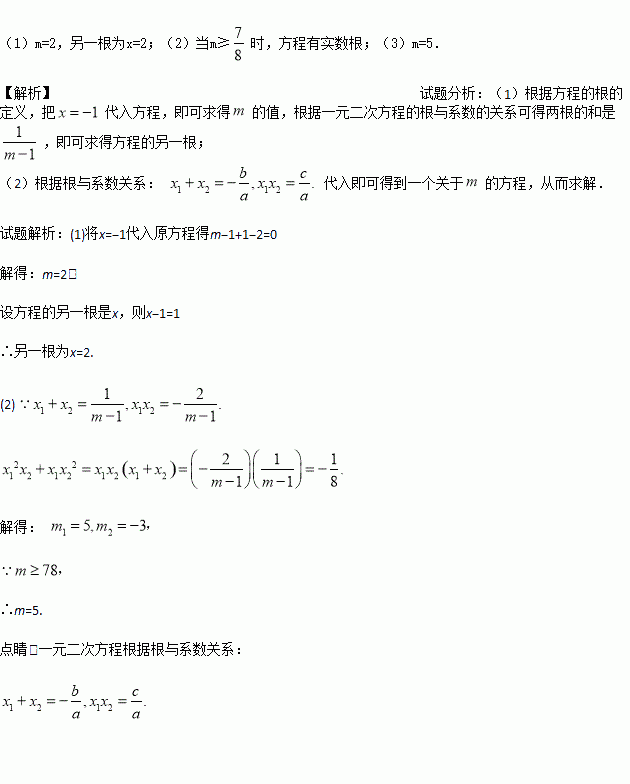 (1)若x=﹣1是方程的一个根,求m的值和方程的另一根;
