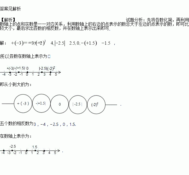这五个数按从小到大顺序,从左到右串个糖葫芦,把数填在“○”内,再把这五个数的相反数在数轴上表示出来.
