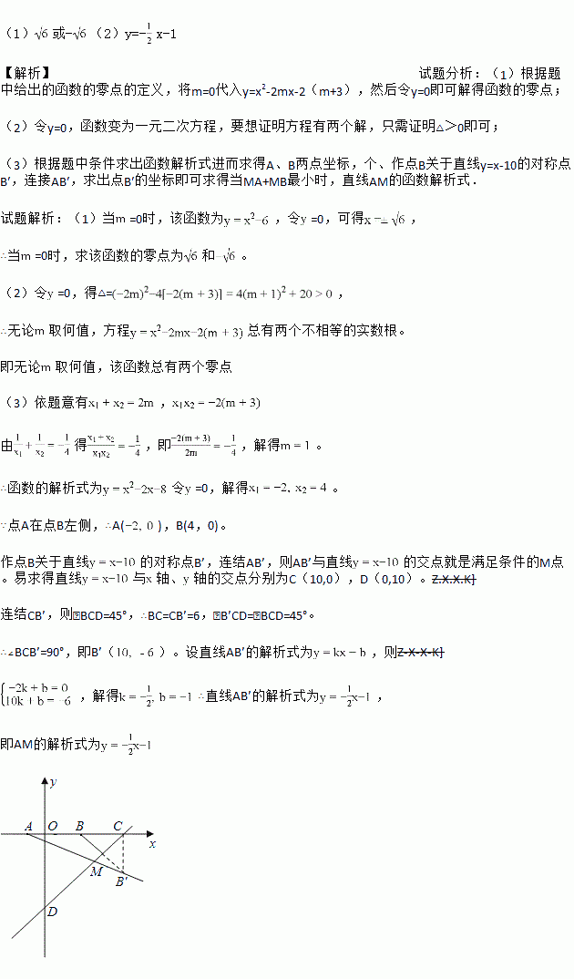 ,此时函数图象与x轴的交点分别为A,B(点A在点B左侧),点M在直线y=x-10上,当MA+MB最小时,求直线AM的函数表达式.