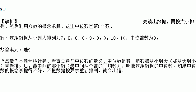 一名射击运动员连续打靶9次,假如他打靶命中环数的情况如图所示,那么该射击运动员本次打靶命中环数的中位数为_____环.