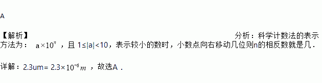 PM2.5是大气中直径小于或等于2.5um ( 1um=0.000001m) 的颗粒物质,也称为可入肺颗粒,它们含有一定量的有毒有害物质,对人体健康和大气环境质量有很大影响,2.3um用科学计数法可表示为:( )