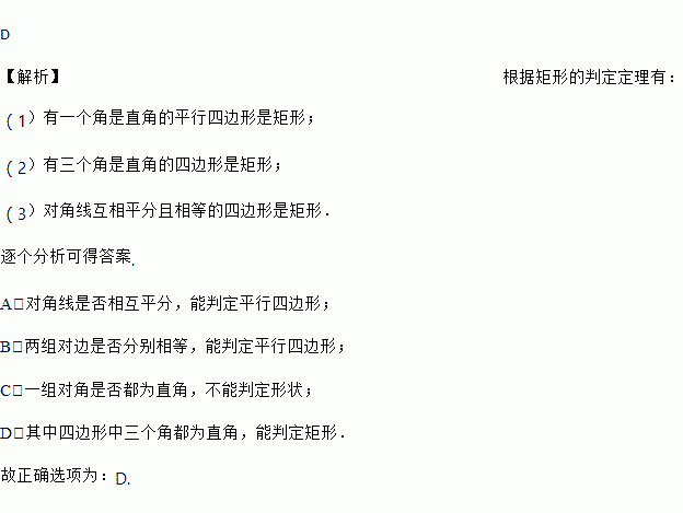在数学活动课上,老师要求同学们判断一个四边形的门框是否为矩形,下面是某合作学习小组的四位同学拟定的方案,其中正确的是( )