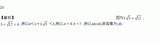 已知a、b为两个连续的整数,若a<1+2<b,则ab的值为_____.