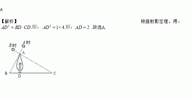 如图,小明在A时测得某树的影长为时又测得该树的影长为4米,若两次日照的光线互相垂直,树的高度为()
