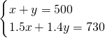 分析:本题考查对方程组的应用能力,要注意由题中提炼出的两个等量关系.即可列方程组解应用题.等量关系为:甲、乙两件服装的成本共500元,将甲服装按50%的利润定价,乙服装按40%的利润定价,甲、乙两件服装的定价和为730元.