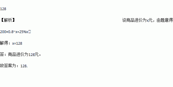 某商品的标价为200元,8折销售仍获利25%,则商品进价为______元;