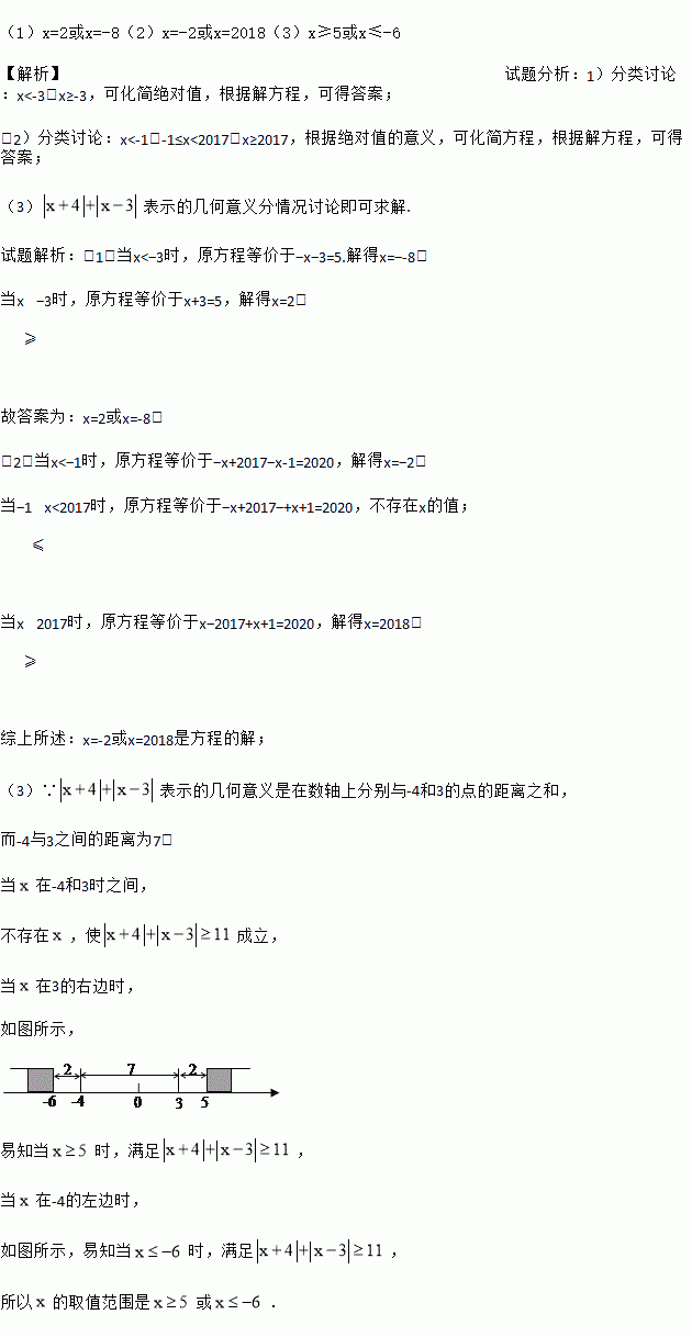 由绝对值的几何意义可知,该方程表示求在数轴上与-1和2的距离之和为5的点对应的