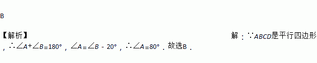 中, ∠A比∠B小20 0 ,则∠A的度数为( )