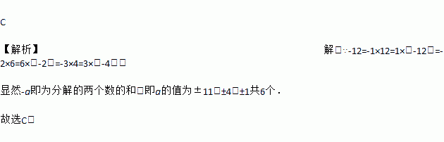 已知能分解成两个整数系数的一次因式的乘积,则符合条件的整数a的个数是( )