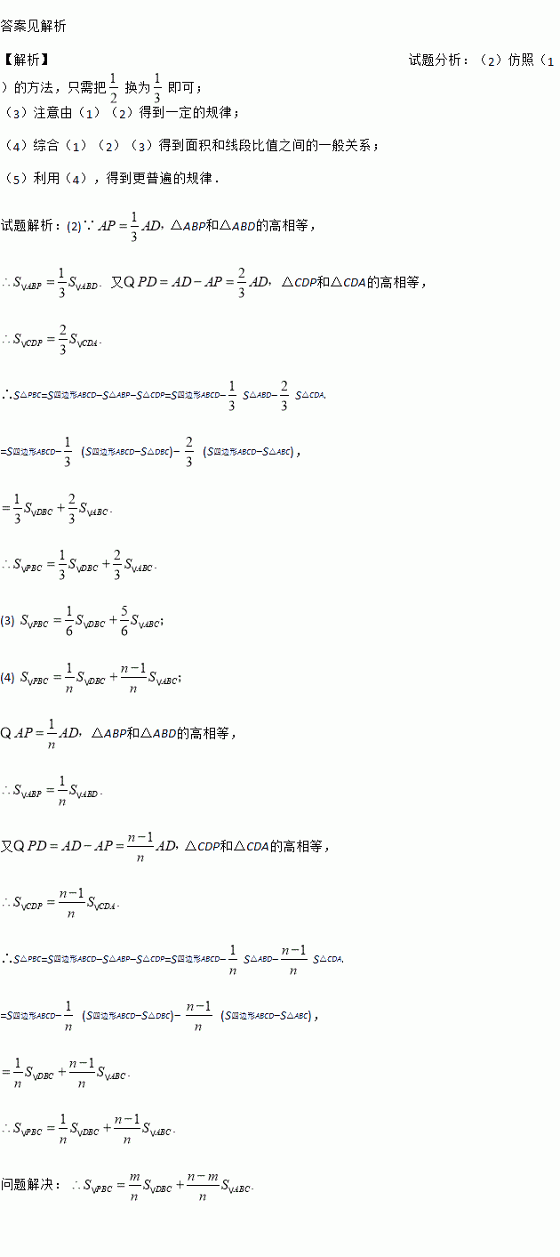 AD(n表示正整数)时,探求S△PBC与S△ABC和S△DBC之间的关系,写出求解过程;