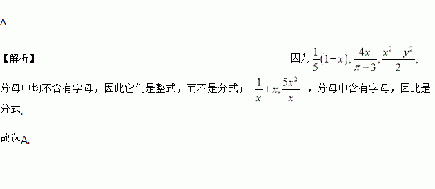 A 【解析】因为 分母中均不含有字母,因此它们是整式,而不是分式; ,分母中含有字母,因此是分式. 故选A.
