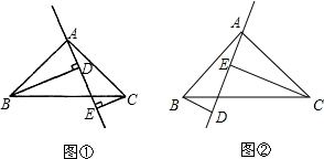 (1)过点A任意一条直线(l不与BC相交),并作BD⊥l,CE⊥l,垂足分别为D、E.度量BD,CE,DE,你发现它们之间有什么关系?试对这种关系说明理由;