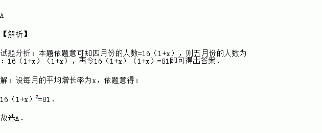 (2014•中山模拟)某旅游公司2012年三月份共接待游客16万人次,2012年五月份共接待游客81万人次.设每月的平均增长率为x,则可列方程为( )