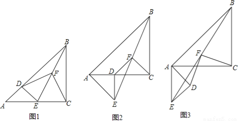 (10分)已知△ABC和△ADE是等腰直角三角形,∠ACB=∠ADE=90°,点F为BE中点,连结DF、CF.