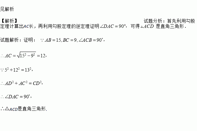已知:如图,四边形ABCD中,∠ACB=90°,AB=15,BC=9,AD=5,DC=13,